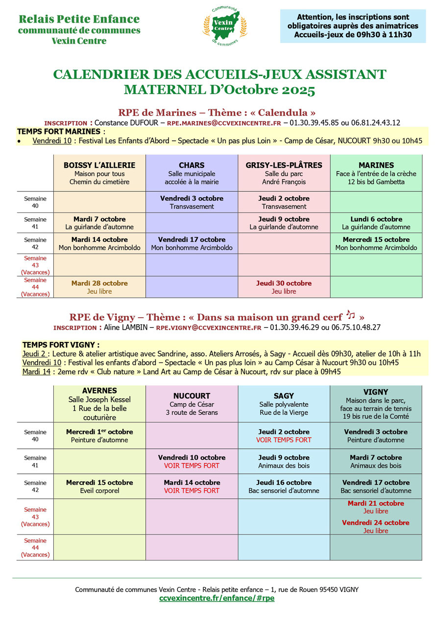 06. octobre 2025 Relais Petite Enfance : Accueils-jeux assistants maternels — planning du mois d'octobre tagPlaceholderCatégories :